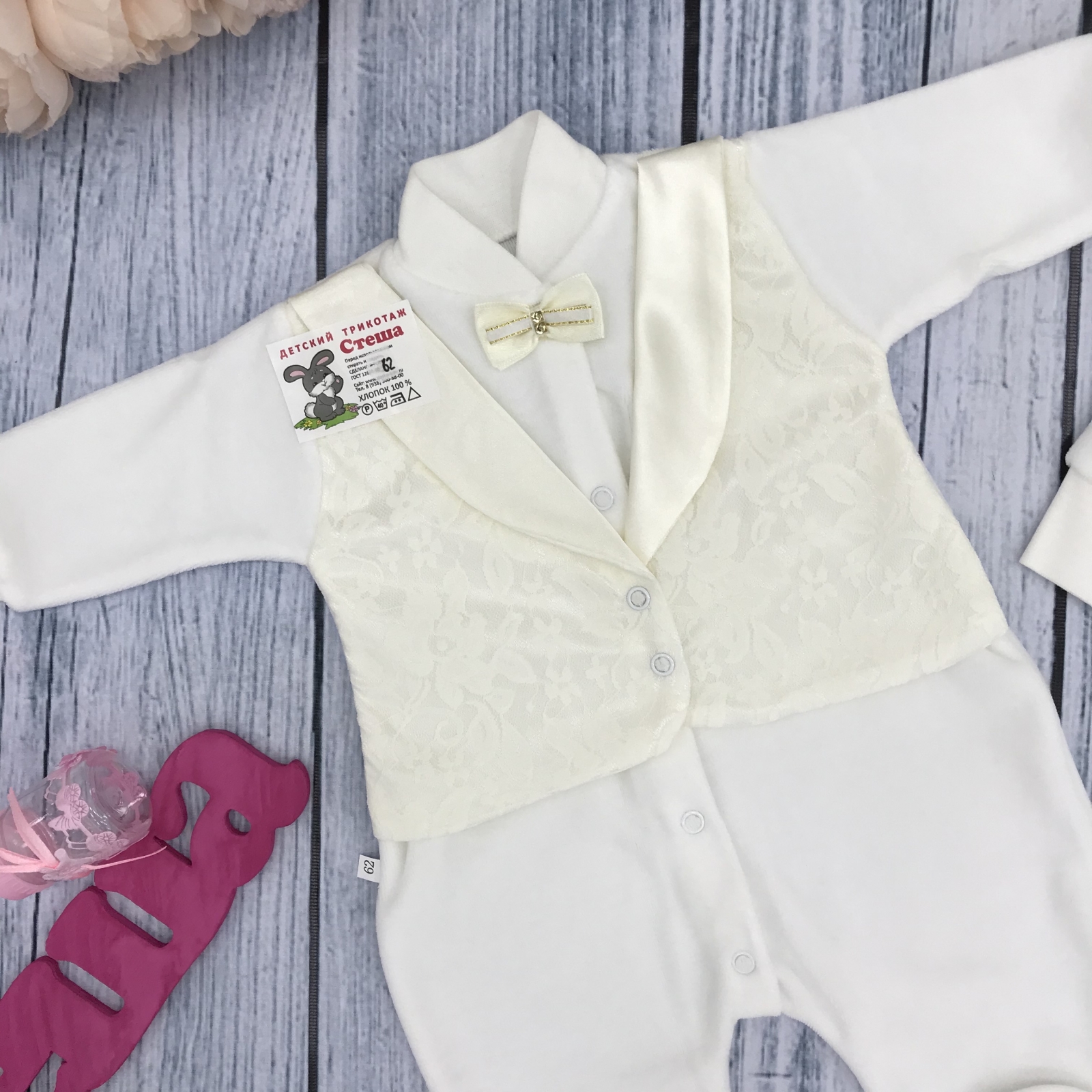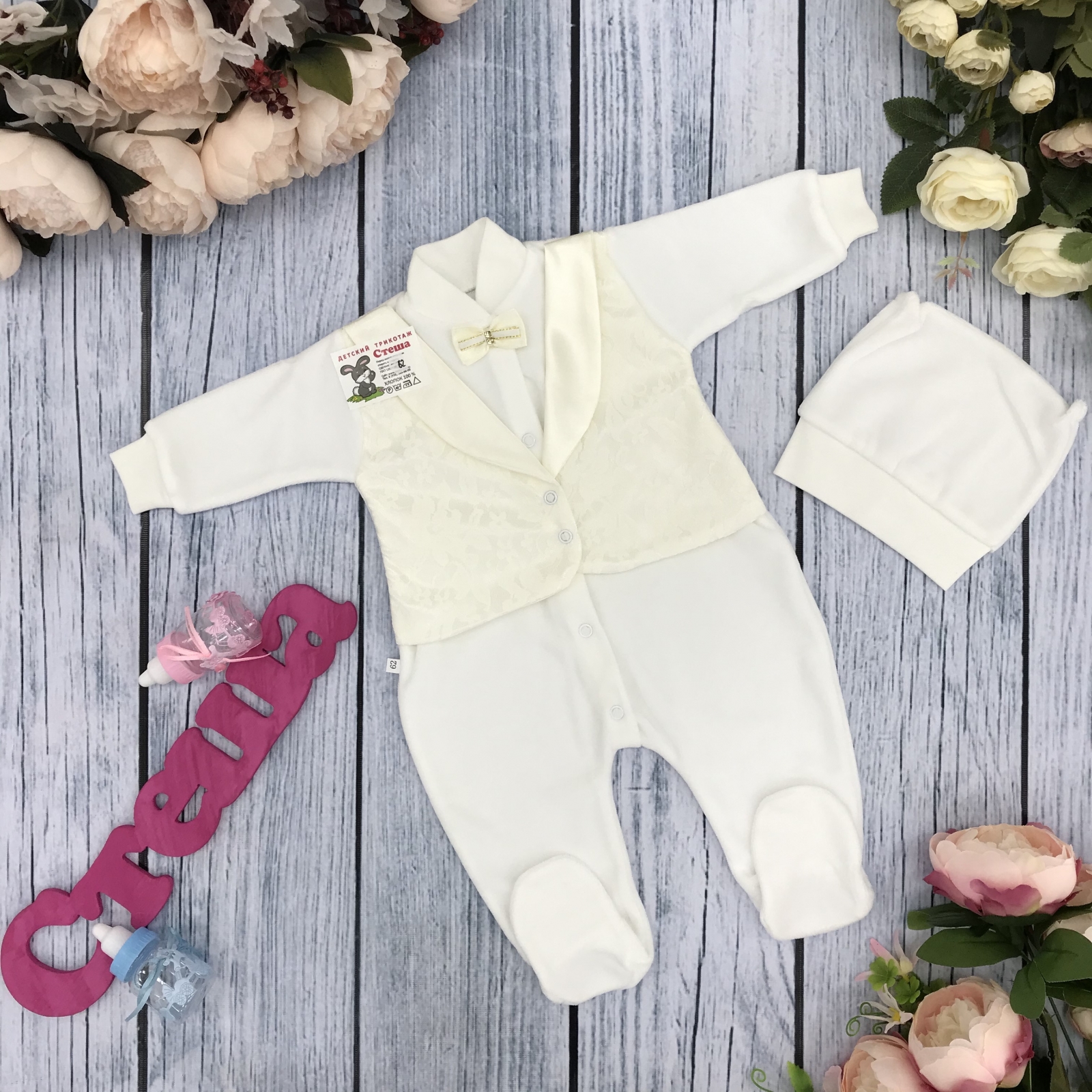 Теги: Купить оптом детский комбинезон из велюра. 261-М. Комбинезон с шапкой, хлопок 80% велюр 20% ПЭ, молочный цена,отзывы официальный сайт "Стеша Севастополь"