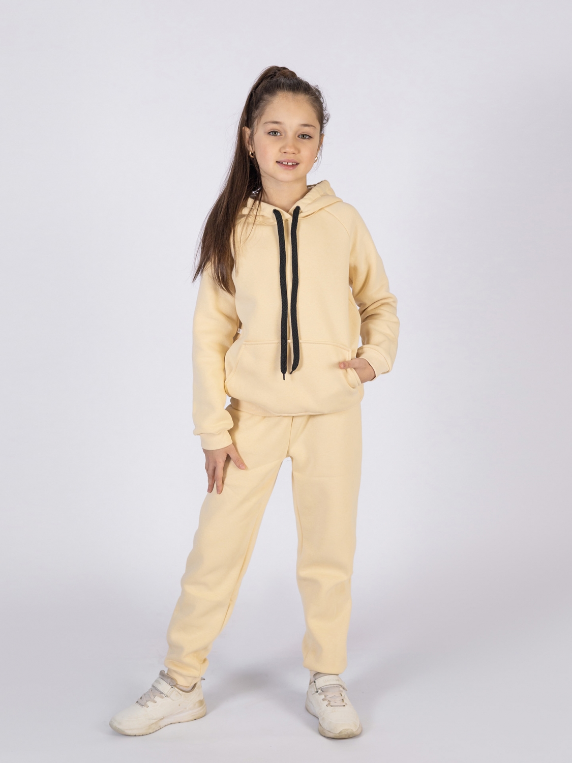 Купить оптом 296-СЛ. Свитшот с капюшоном + Штаны, хлопок 65%, 35% ПЭ, 3-х нитка (начес) сливочный 98,104,110,116 в Севастополе