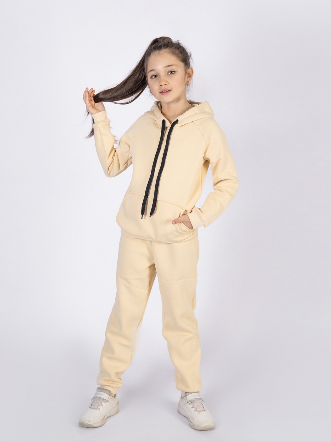 Купить оптом 296-СЛ. Свитшот с капюшоном + Штаны, хлопок 65%, 35% ПЭ, 3-х нитка (начес) сливочный 122,128,134,140 в Севастополе